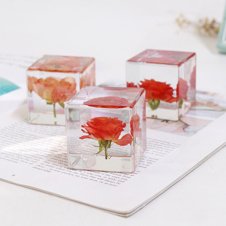 Wholesale 6pcs Orange Juice Rose Dried Flower High Transparent Resin Ornaments