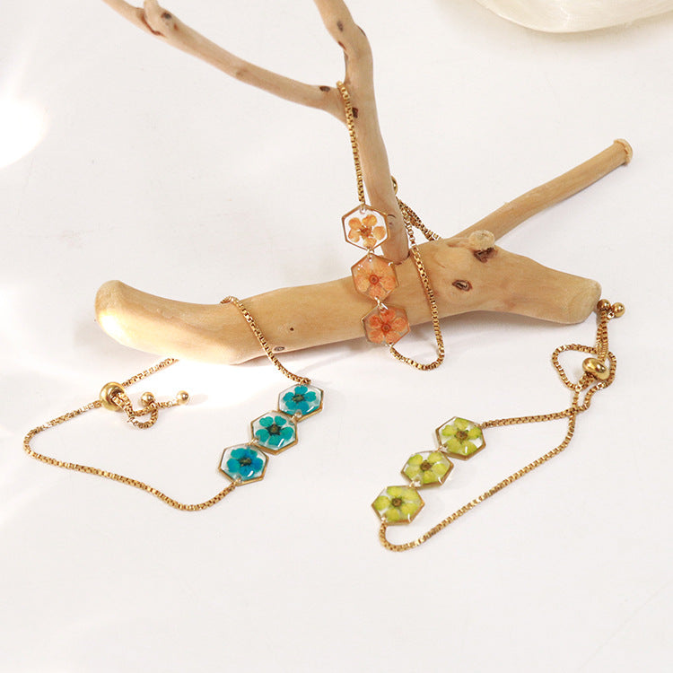 Wholesale 6pcs Real Flower Pearl Bush Hexagonal Everlasting Flower Bracelet