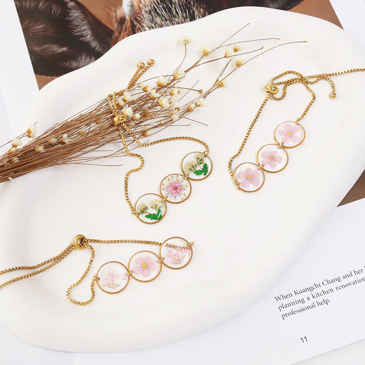Wholesale 6pcs Small Daffodil Real Flower Dried Flower Resin Dripping Glue Bracelet