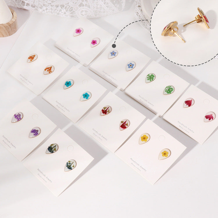 Wholesale 6pcs Stainless Steel Electroplated Gold Dried Flower Maillard Style Earrings