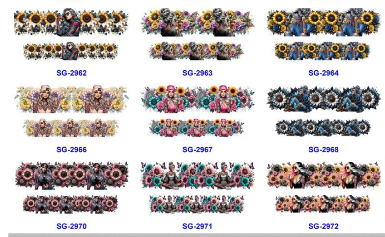 Wholesale 8pcs Sunflower and Woman Print 3oz Cup Stickers Wrap