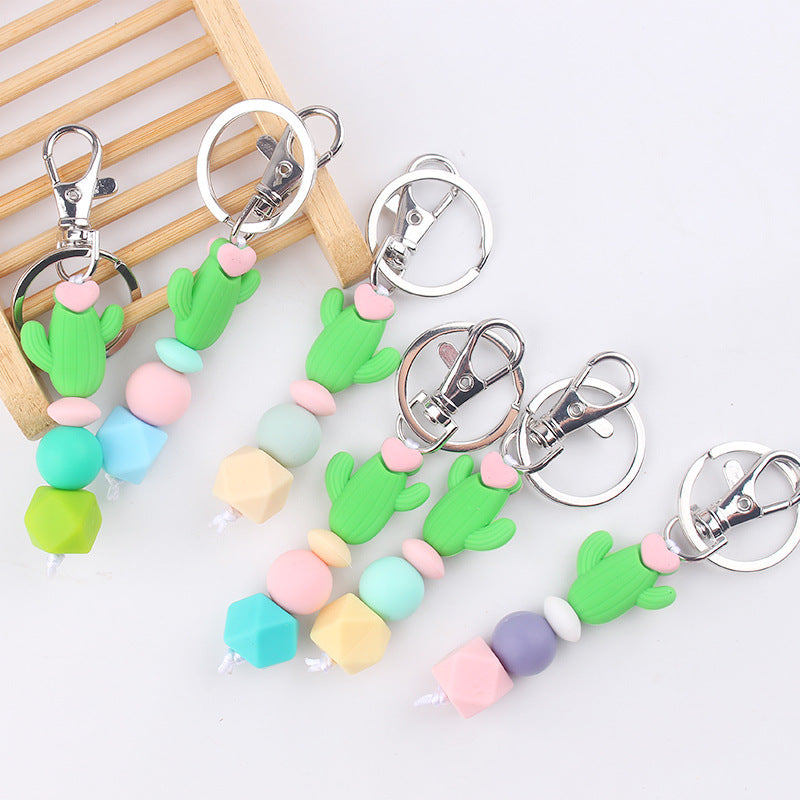 Wholesale Cartoon 3D Cactus Silicone Beaded Keychain