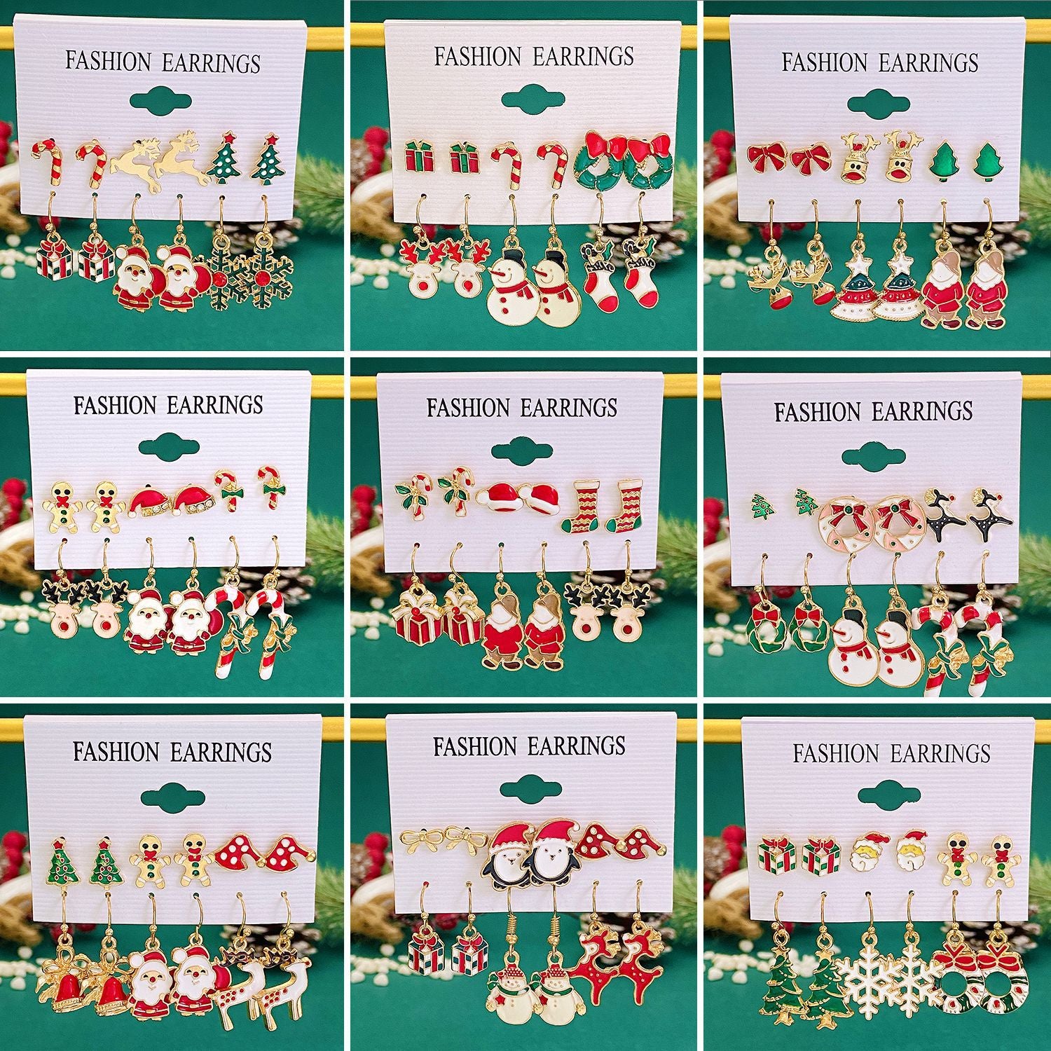 Wholesale Christmas Oil Drip Christmas Bell Elk Earrings Set