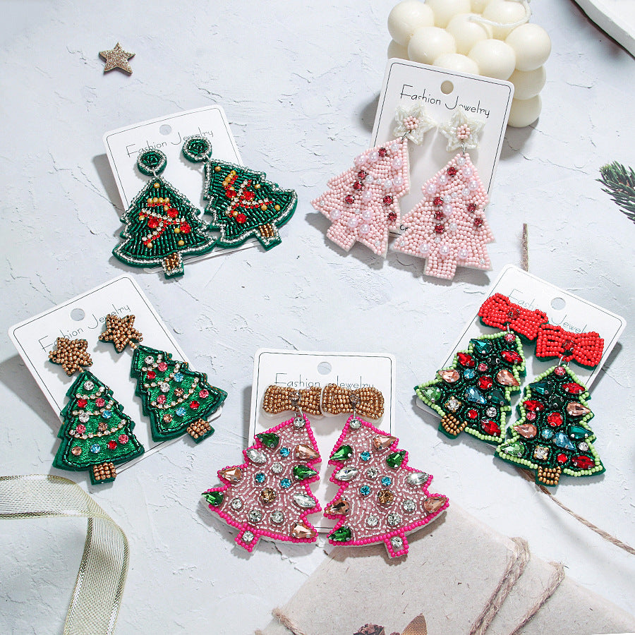 Wholesale Christmas Series Christmas Tree Rice Bead Earrings