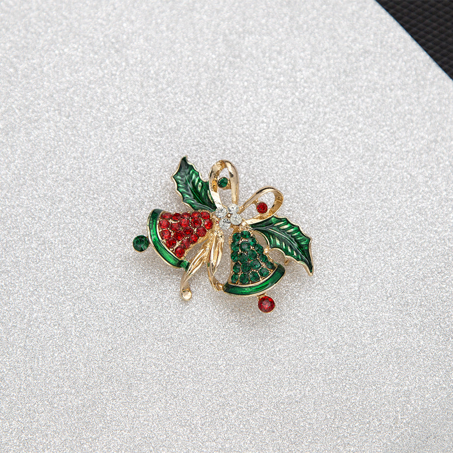 Wholesale Creative Oil Drop Bow Bell Leaf Christmas Brooch