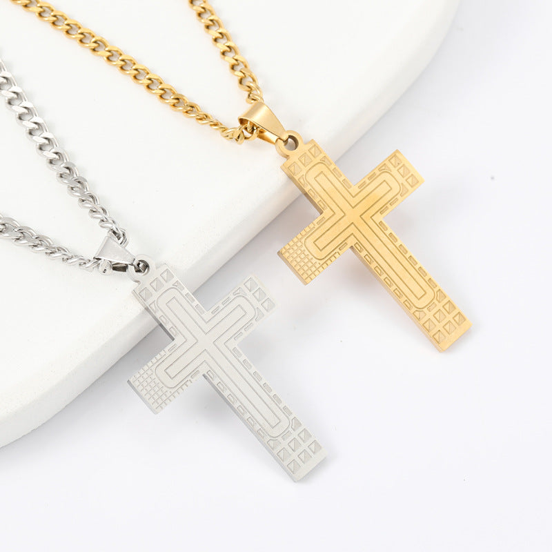Wholesale Cross Pendant Fashion Geometric Line Titanium Steel Necklace