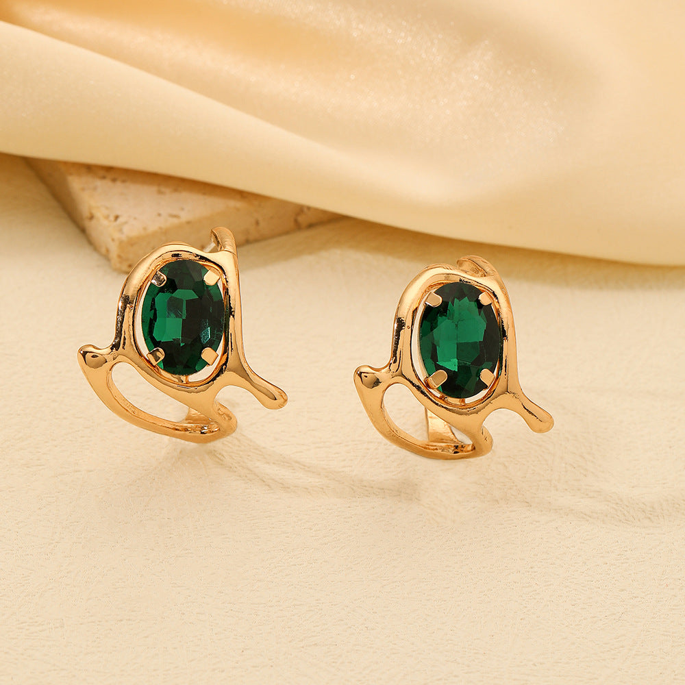 Wholesale Fashion Irregular Geometric Emerald C-shaped Earrings