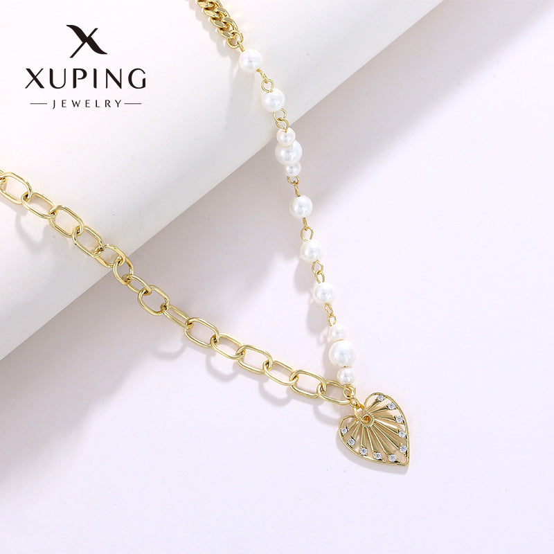 Wholesale Fashion Patchwork Imitation Pearl Autumn and Winter Niche Design, Love Pendant Temperament Collarbone Chain Necklaces