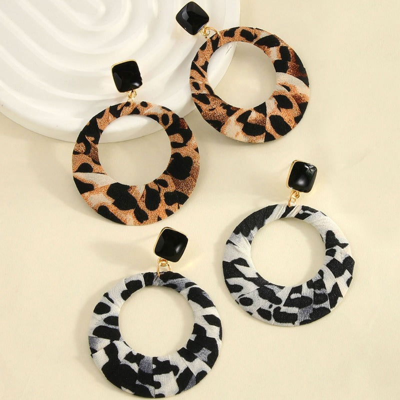 Wholesale Fashionable Personalized Leopard Print Geometric Circular Versatile Elegant High-end Earrings