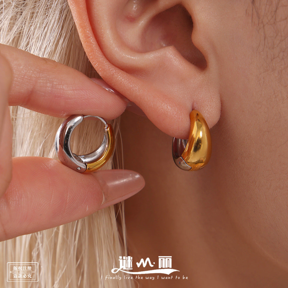 Wholesale Plain stainless steel high polished gold color matching earrings