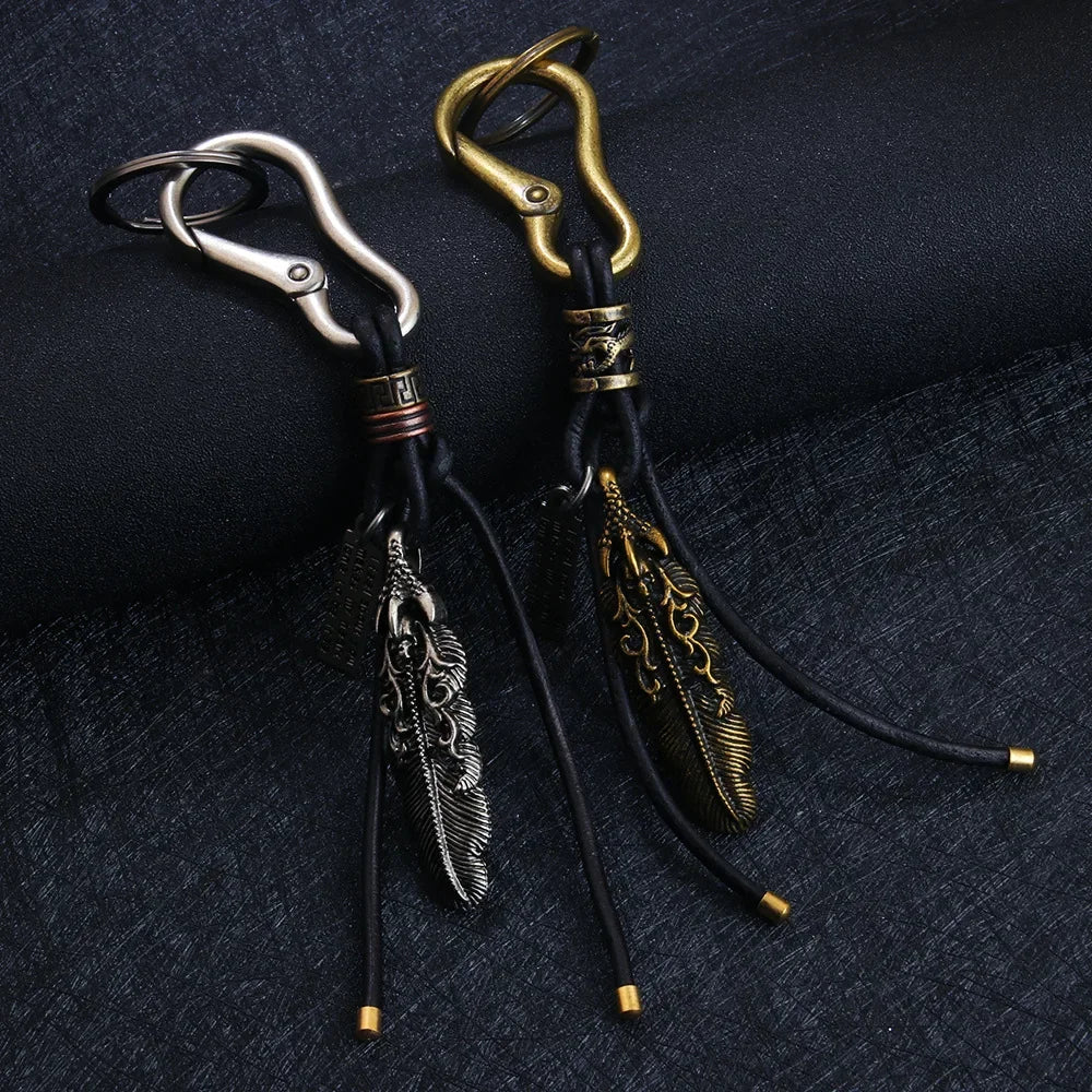 Wholesale retro woven cowhide keychain creative design bronze pendant