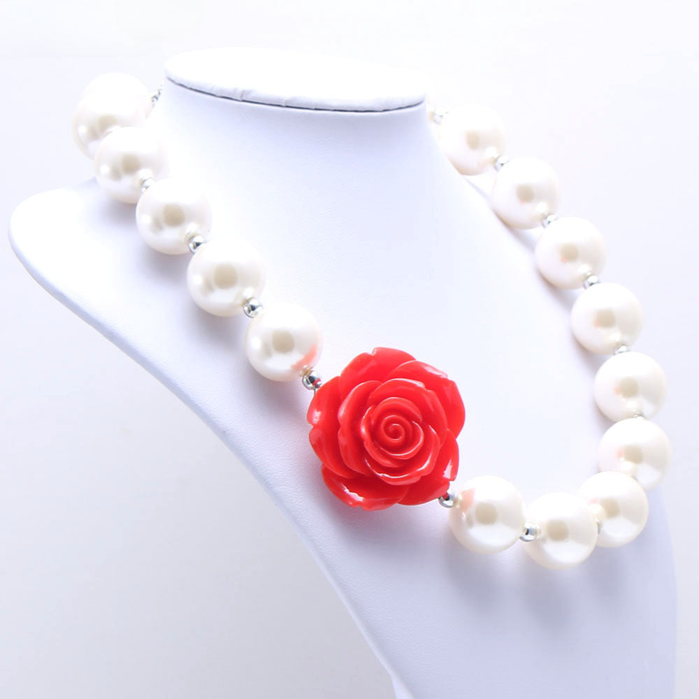 Wholesale Red Flower Beige Pearl Children's Beaded Necklace