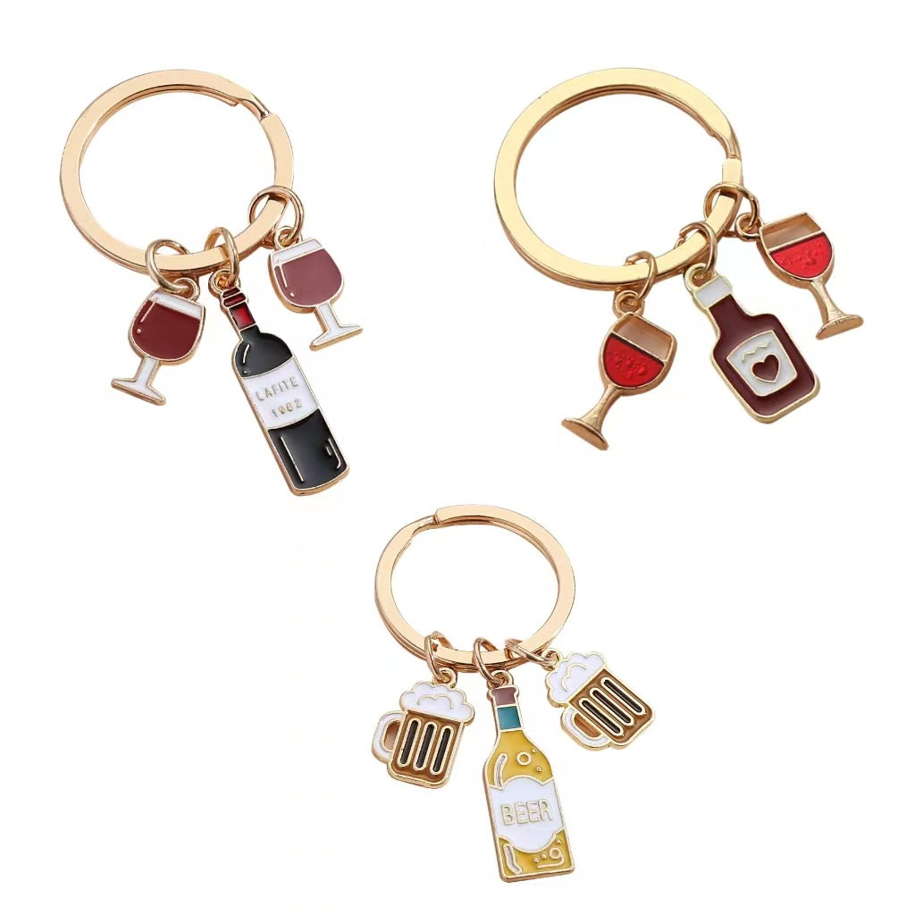 Wholesale Red Wine Beer Oil Drop Alloy Keychain