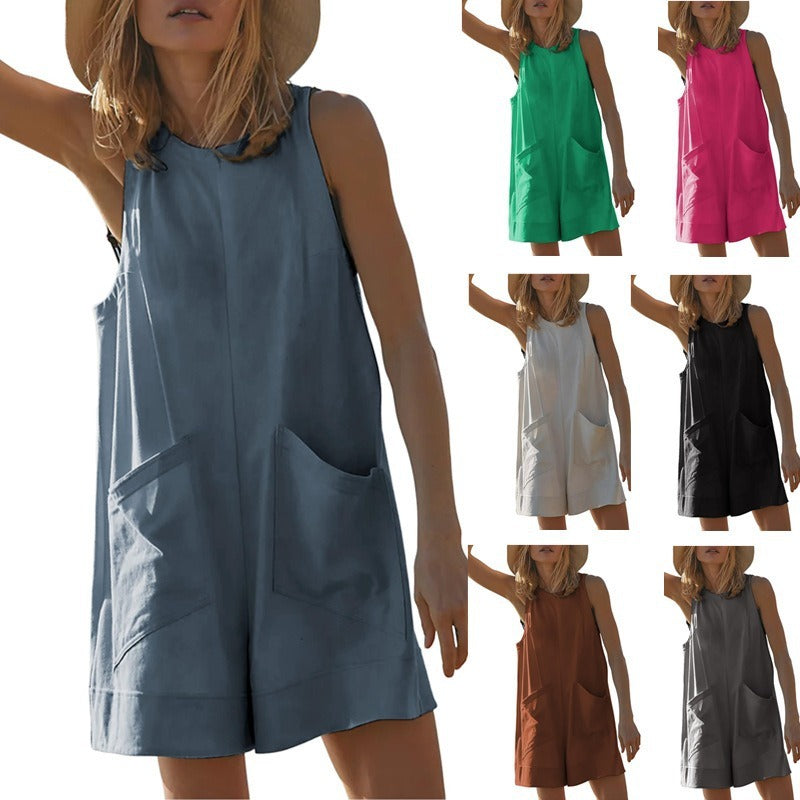 Wholesale Sleeveless Casual Pocket Fashion Three-quarter Jumpsuit
