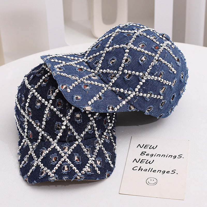 Wholesale Trendy Washed Denim Diamond Baseball Cap with Holes