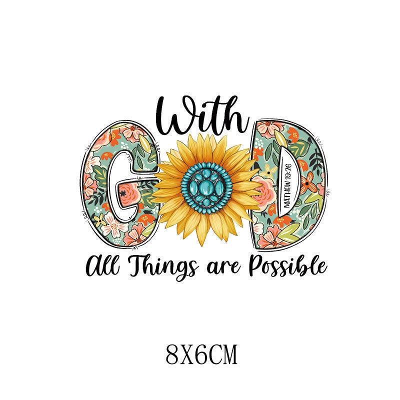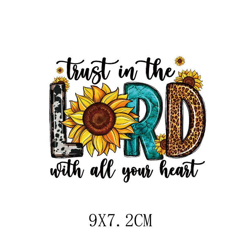 Wholesale 5pcs/pack Yellow sunflower letter heat transfer printing UV DTF Ready to Press Transfers Wraps