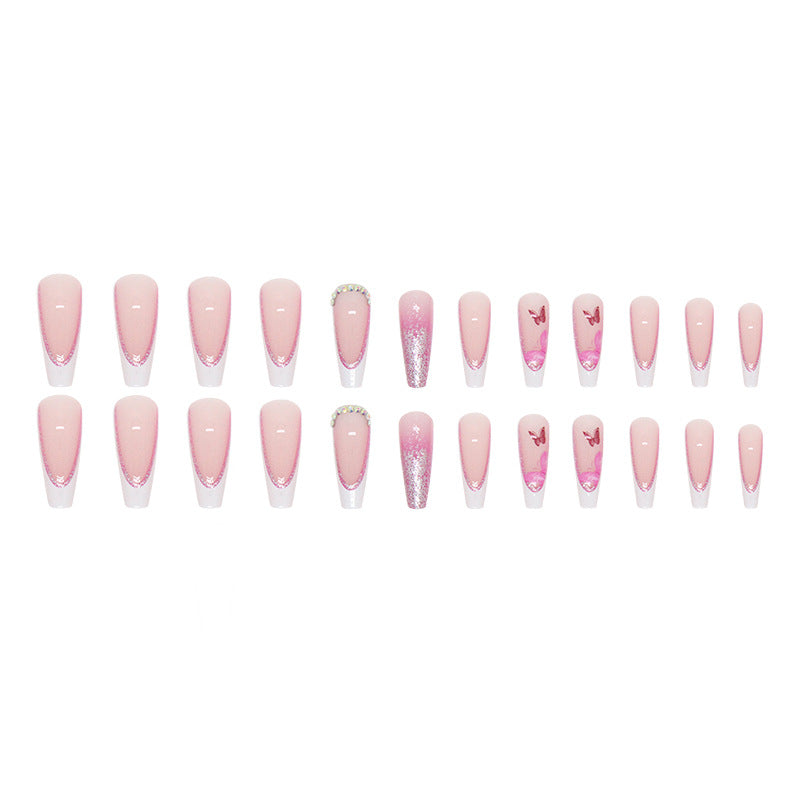 Ballet Long Long Ballet Pink Glitter French Diamond Style Pink Butterfly Stickers
