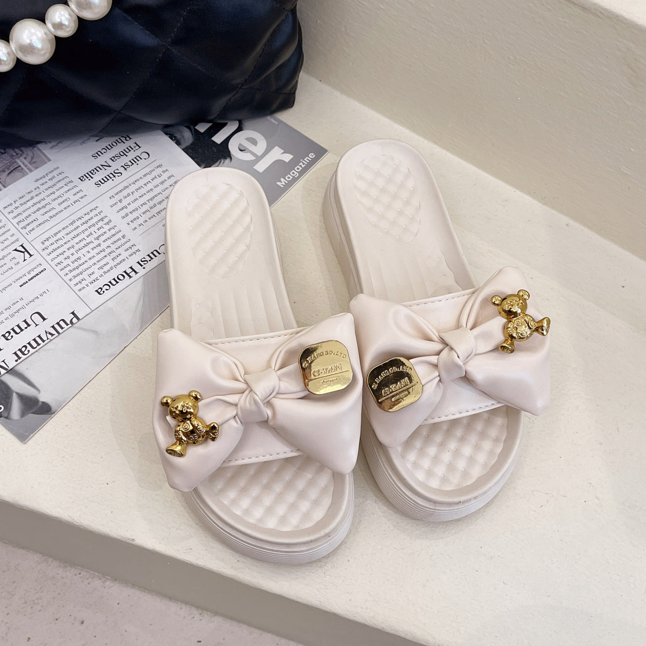 Flip de arco de goma de goma al por mayor zapatillas decorativas de metal