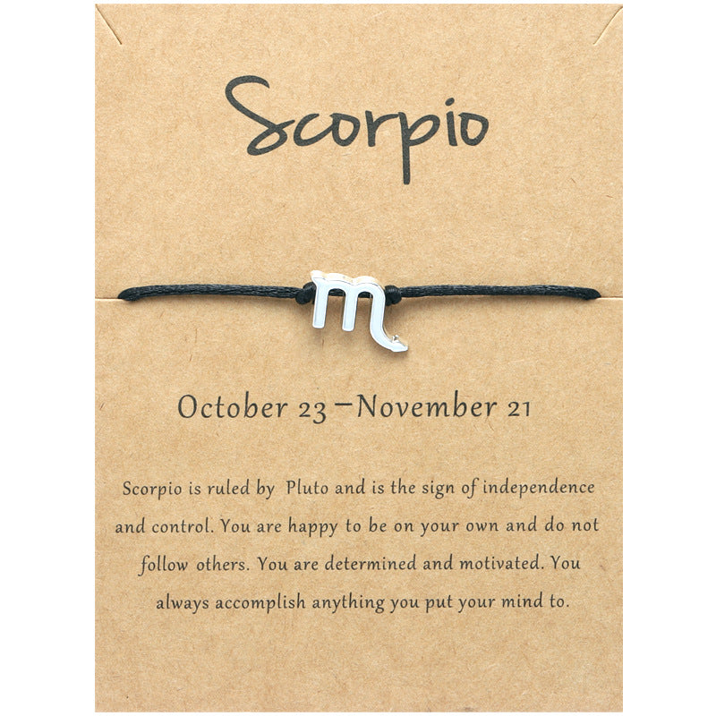 Pulsera de cordón negro ajustable de doce constelaciones al por mayor