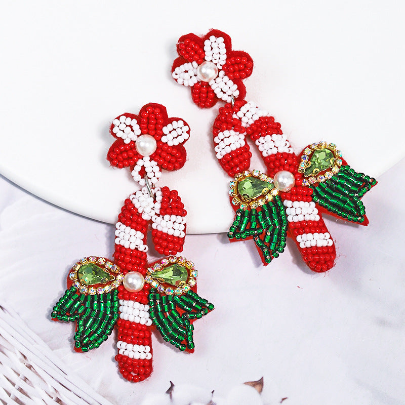 Wholesale Christmas Creative Cute Candy Cane Christmas Earrings