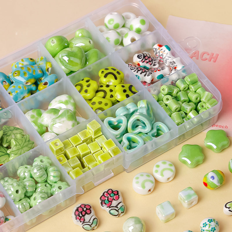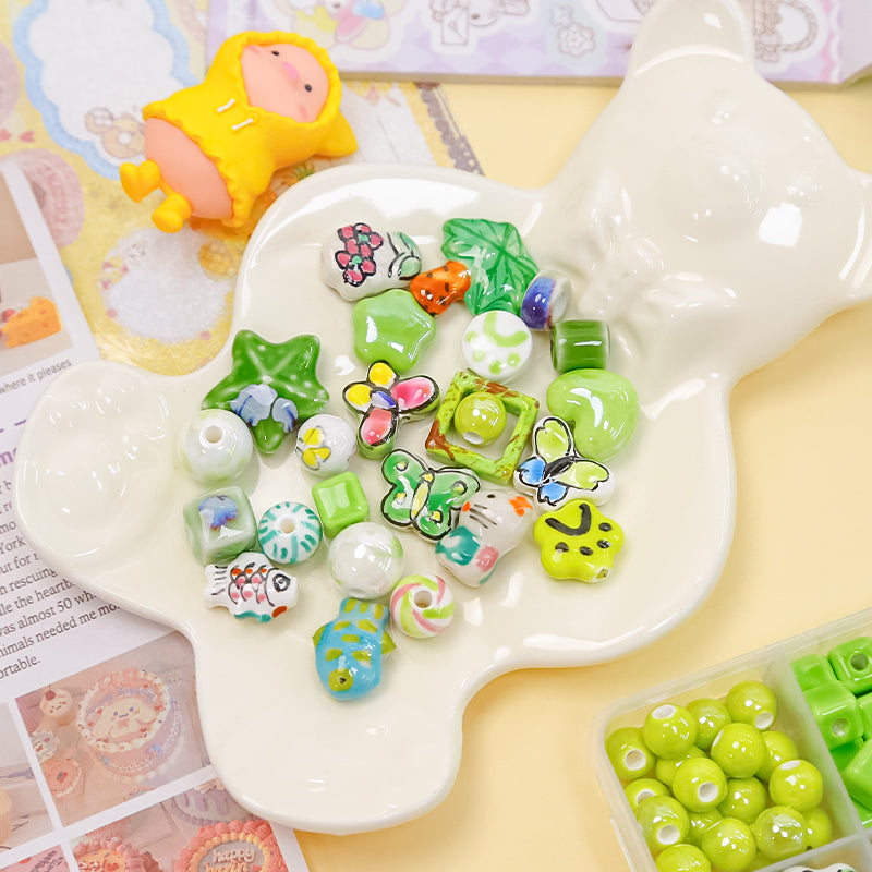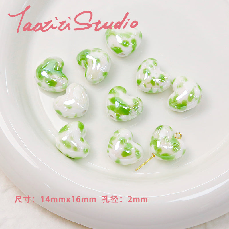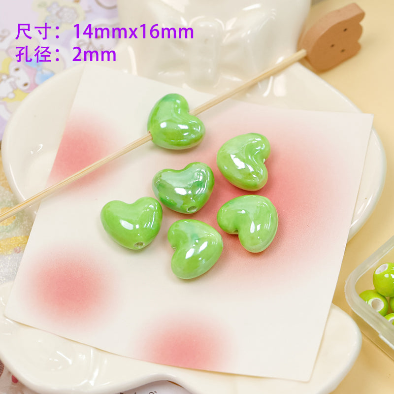 Al por mayor 30 piezas de cerámica verde fresca Cerámica encantadora Butterfly Heart Beads