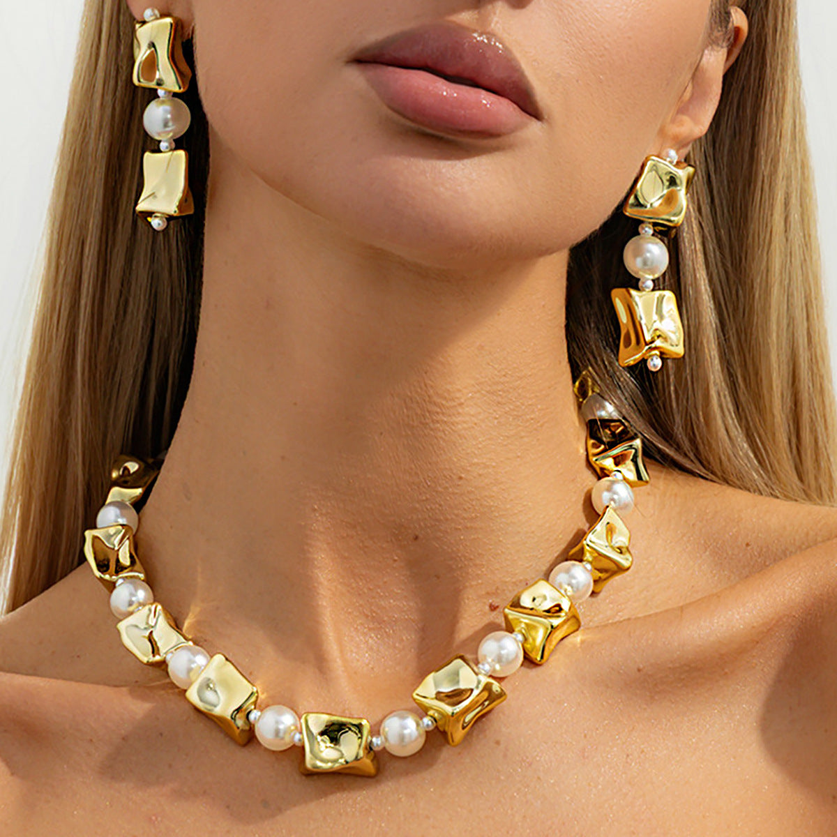 Wholesale Square Ccb Imitation Pearl Beaded Necklace