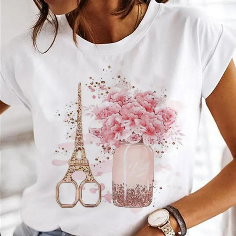 Wholesale Women's Summer Loose Casual V-neck Polyester Short Sleeves