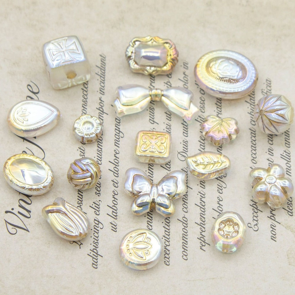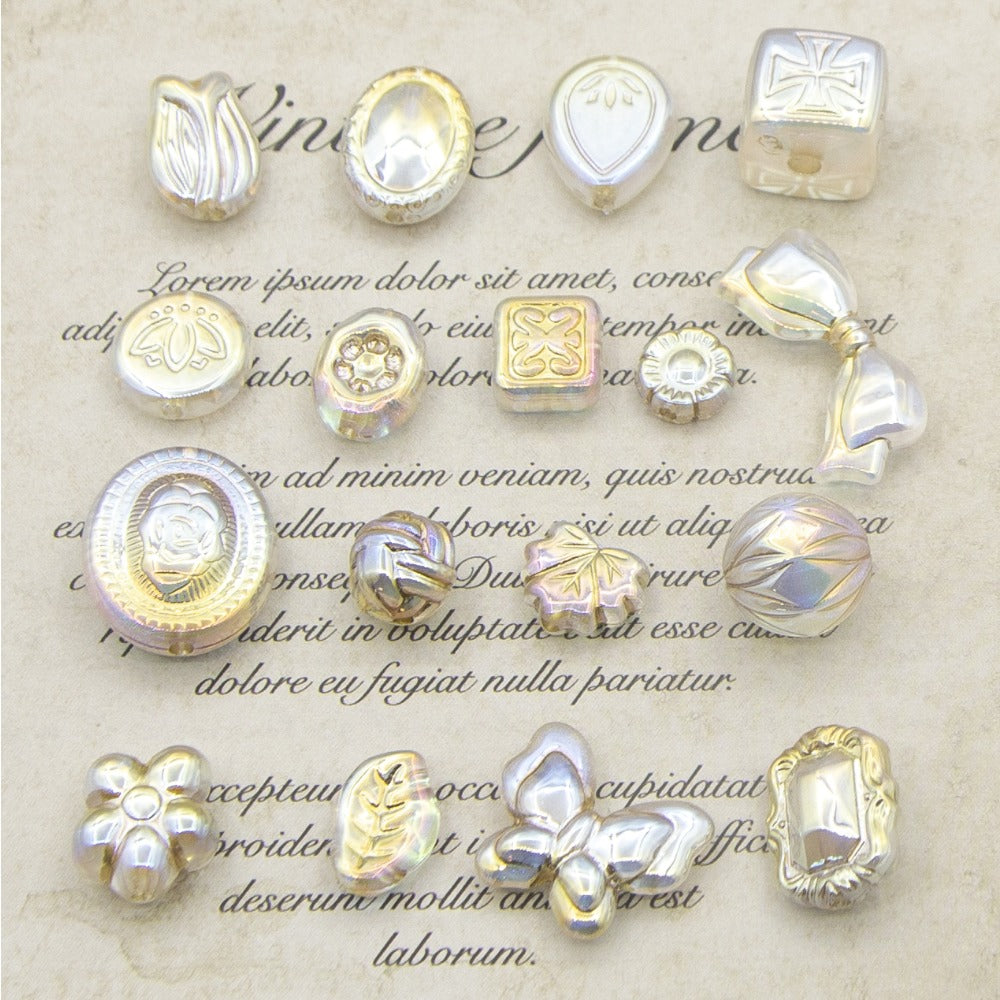 Wholesale 50pcs Retro White Pattern Gold Beads Magic Mirror Lamp Butterfly Beads
