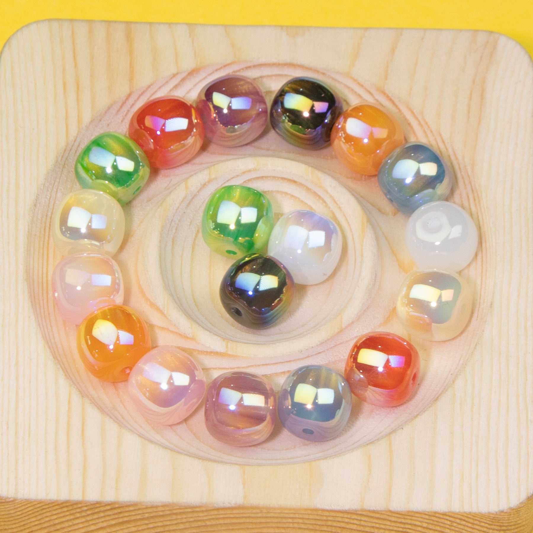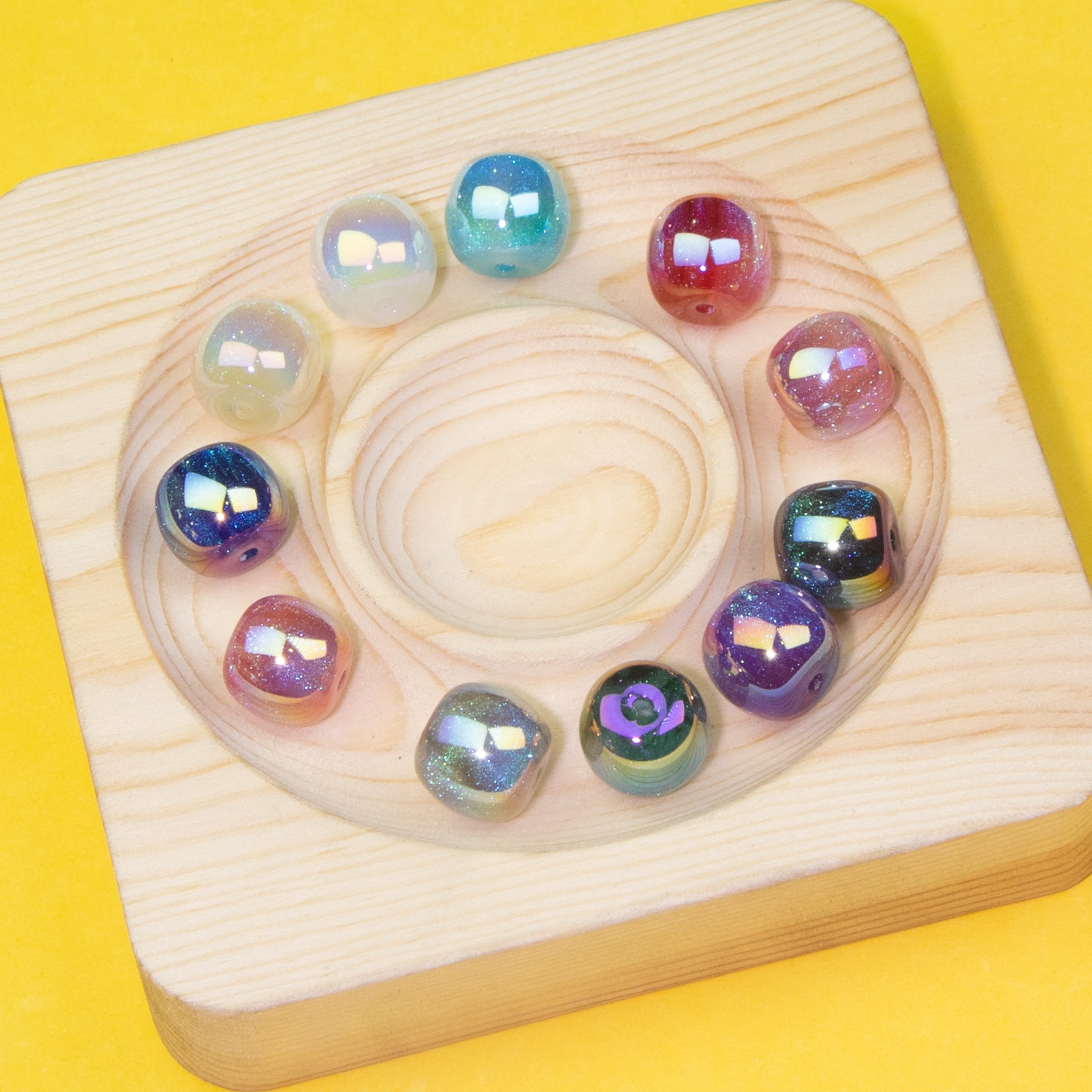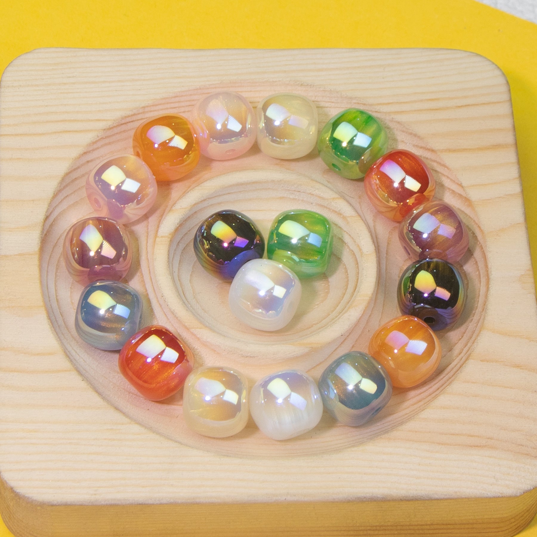 Wholesale 10pcs Two Color Cheese Cube Acrylic Luminous Beads