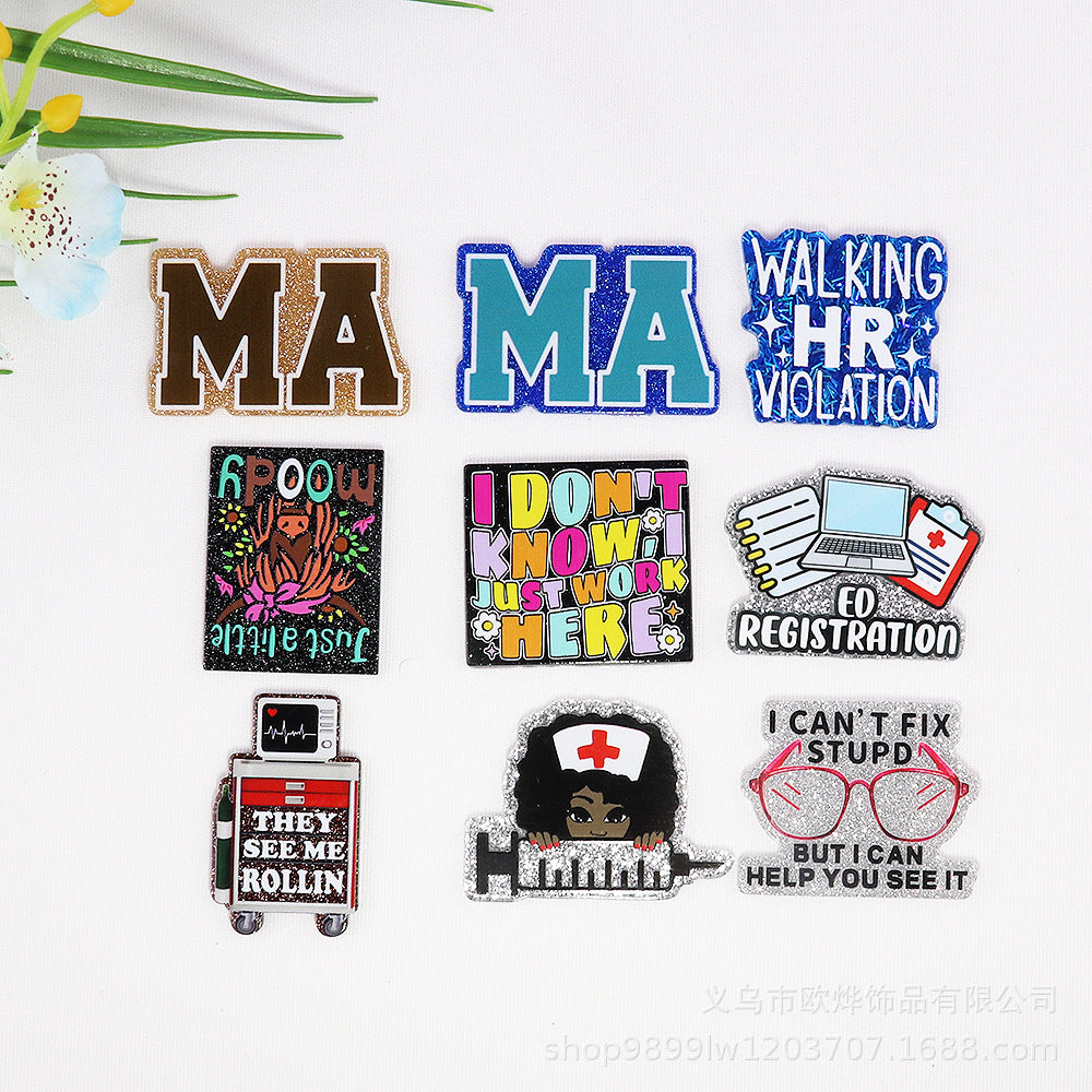 Wholesale 10PCS FlatBack Cartoon Clothes Letters Acrylic Pins DIY Patch