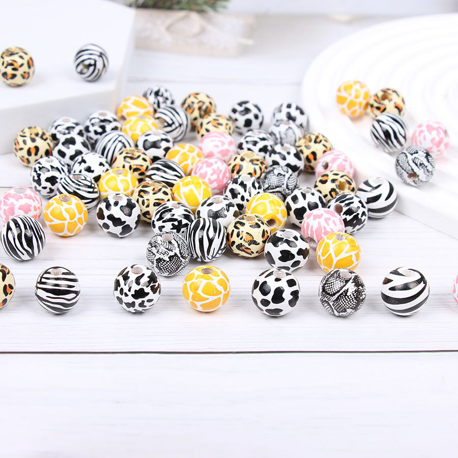 Wholesale 20pcs 16mm Leopard Pattern Wooden Bead Set