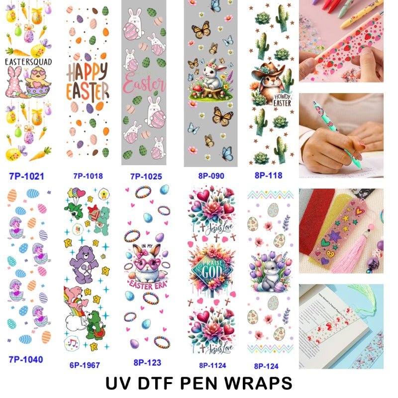 Wholesale 2/8/16pcs Easter Cute Cartoon Rabbit Pen & Bookmark Stickers UV DTF Wraps