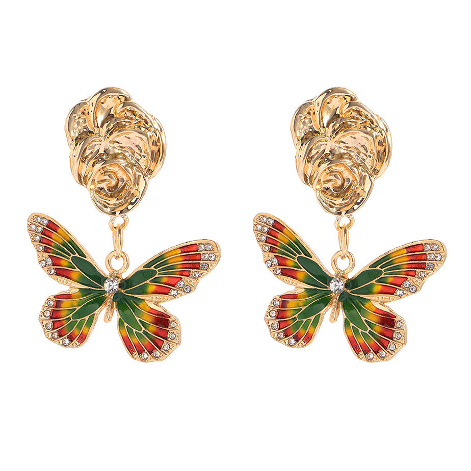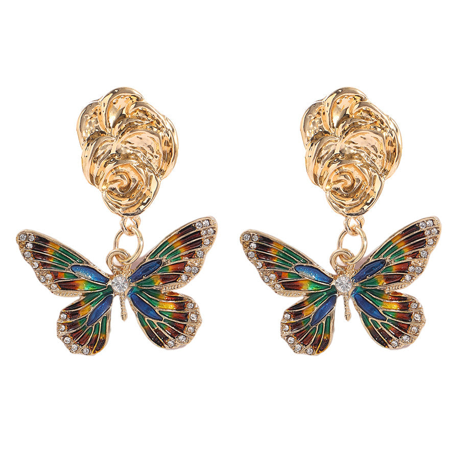 Wholesale Alloy Oil Drop Diamond Color Matching Butterfly Earrings