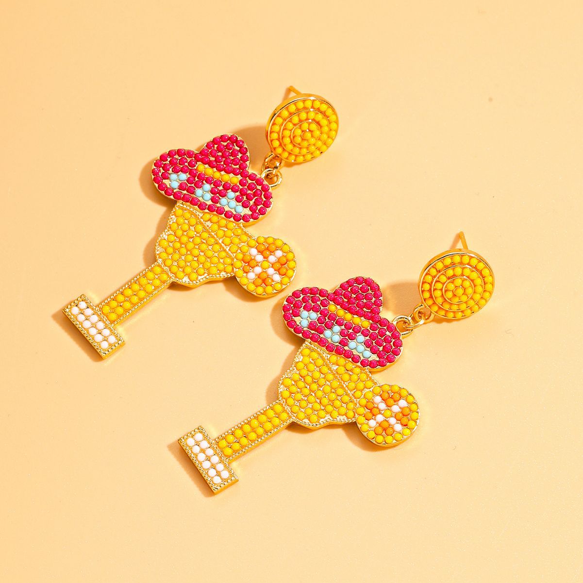 Wholesale Bohemian Rice Bead Alloy Wine Glass Earrings