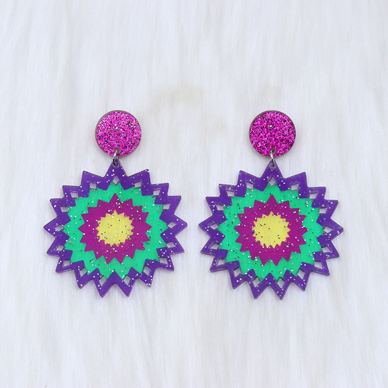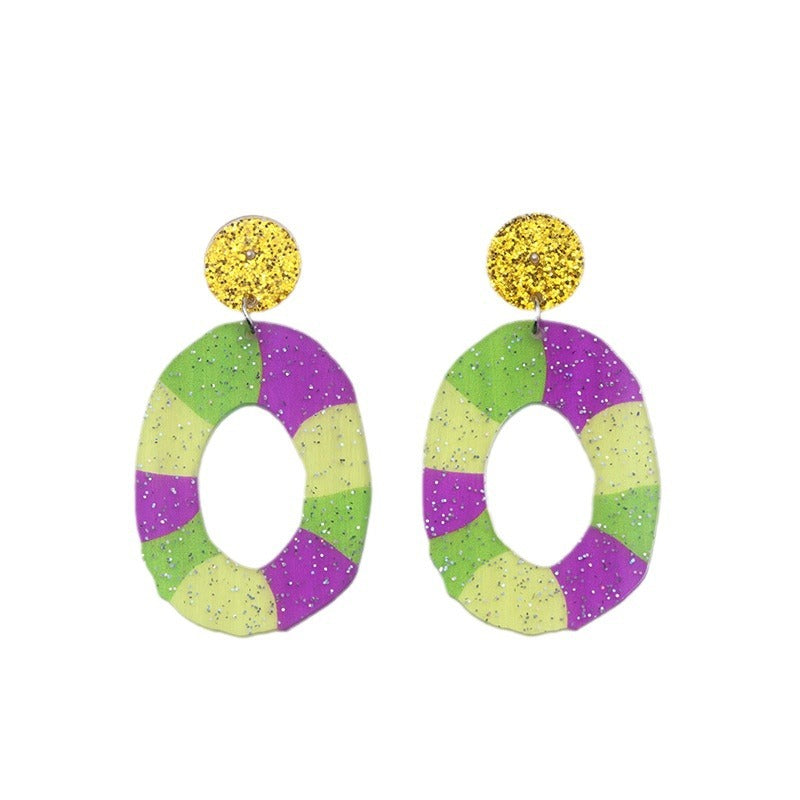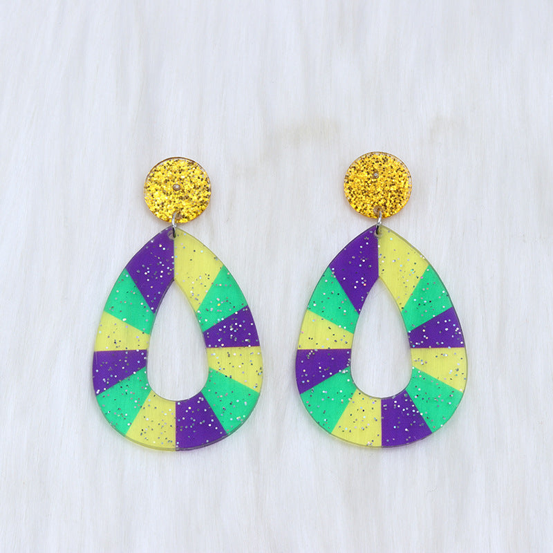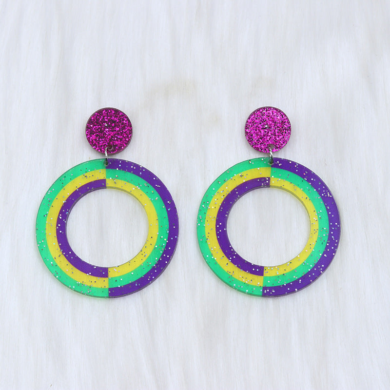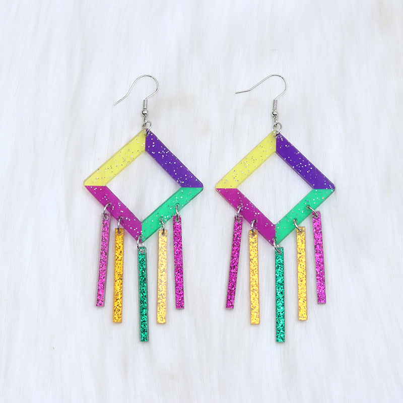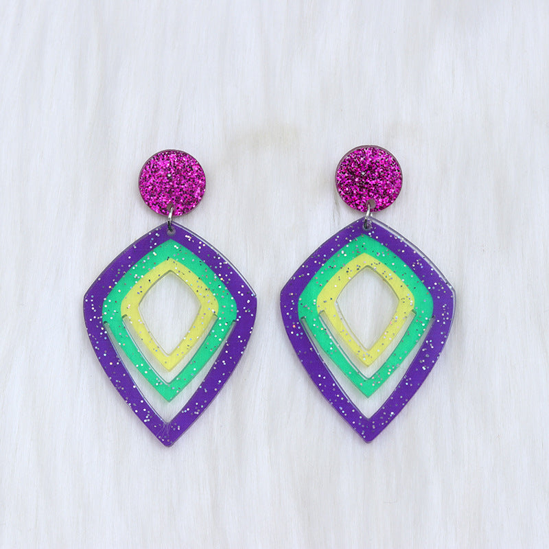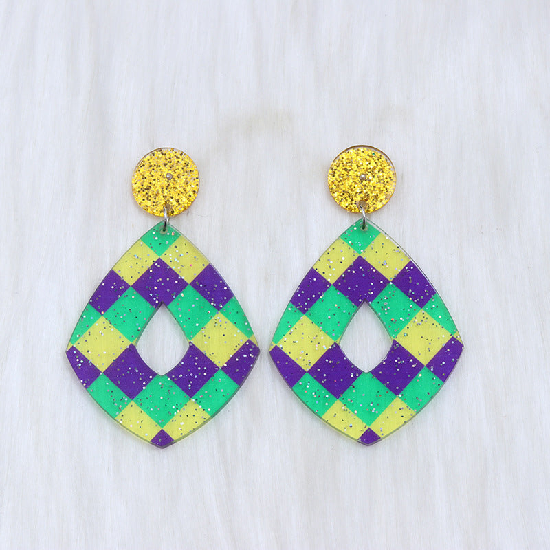 Wholesale Carnival Hollow Diamond Shaped Acrylic Mardi Gras Earrings