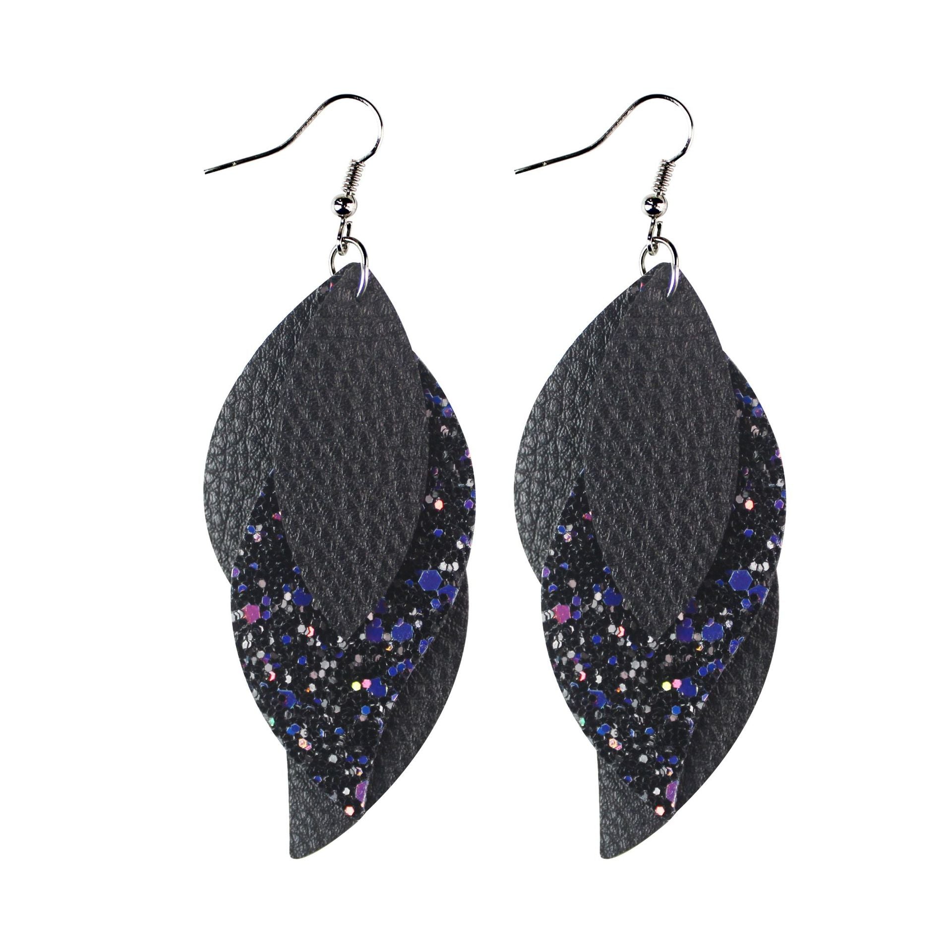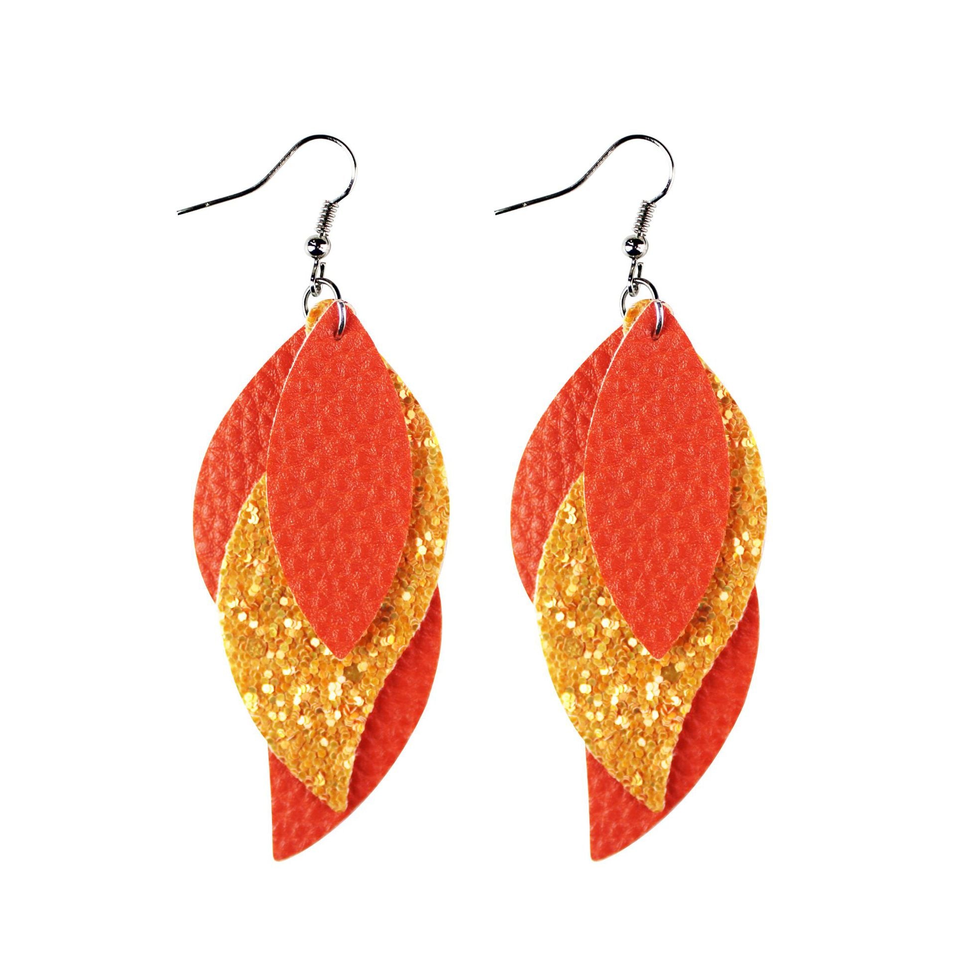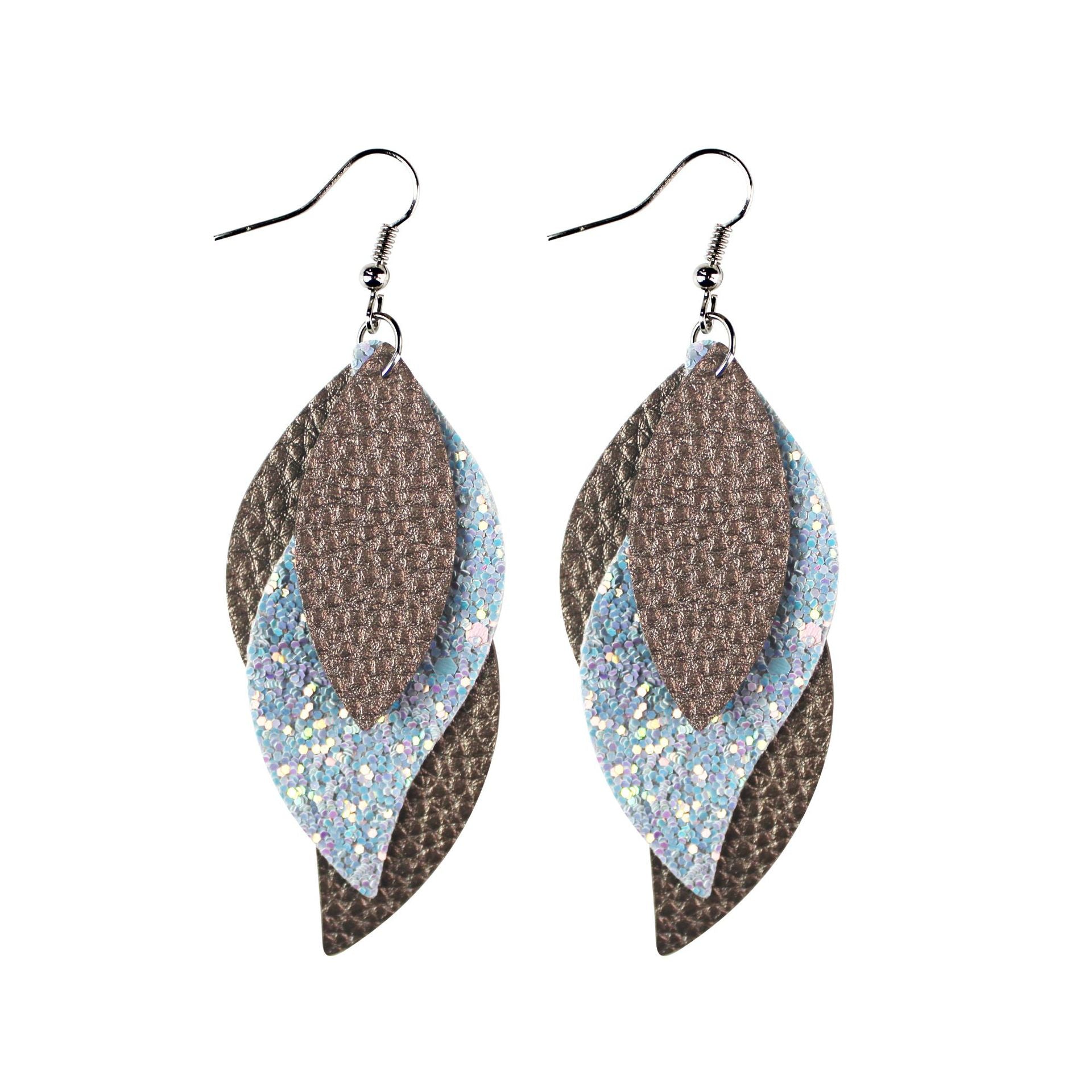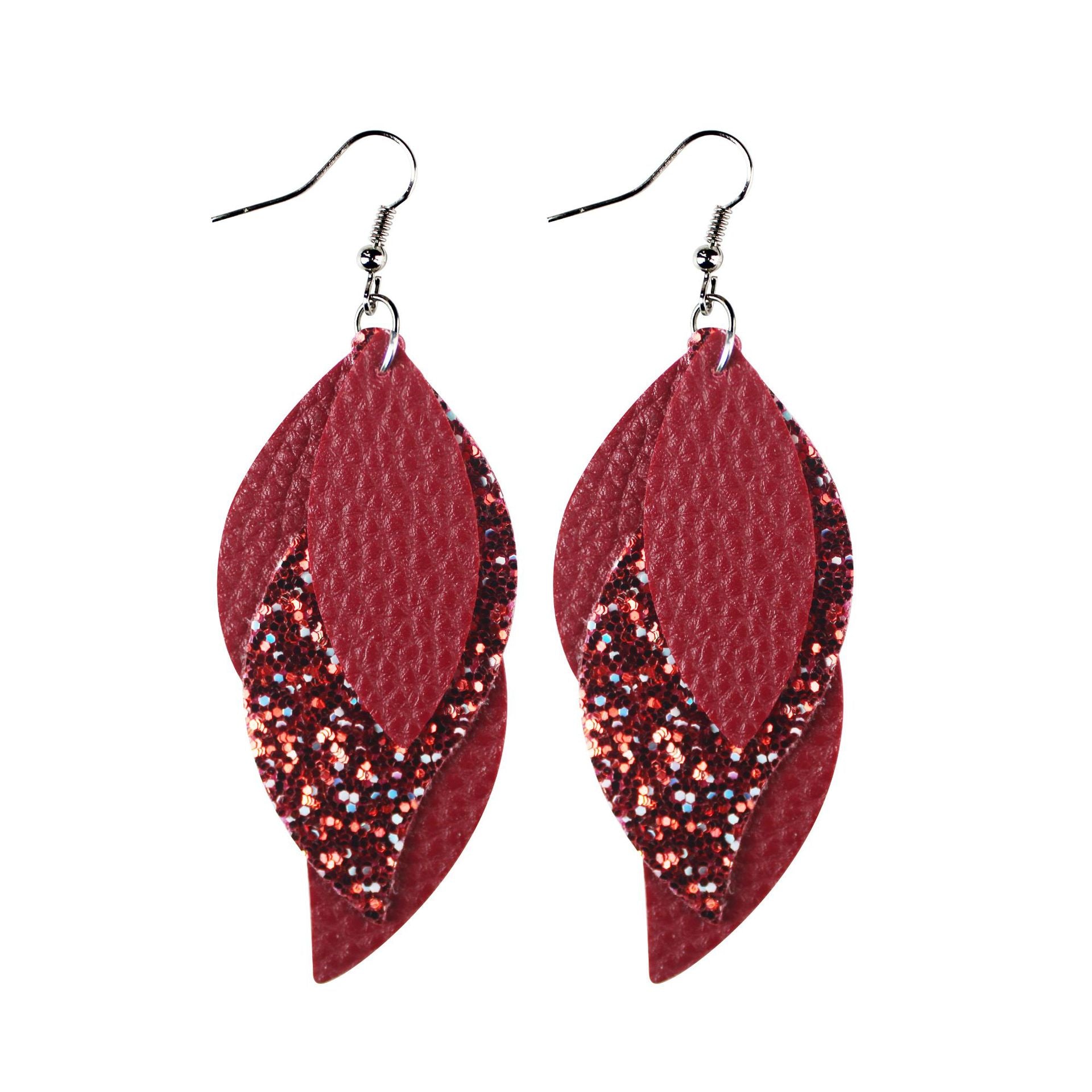Wholesale Lychee Patterned Sequin Leaf Wave Shaped Three-layer Leather Earrings
