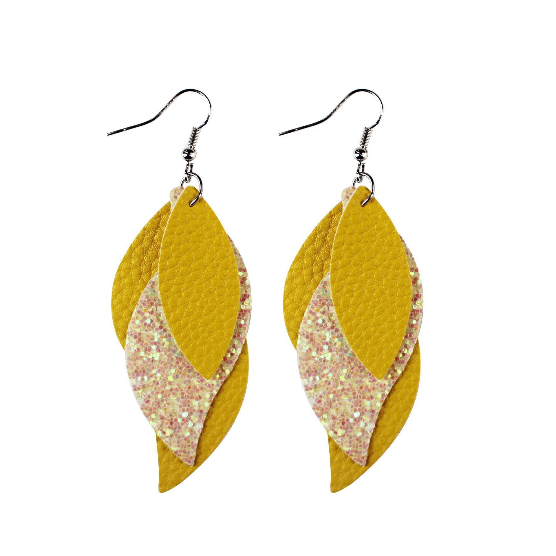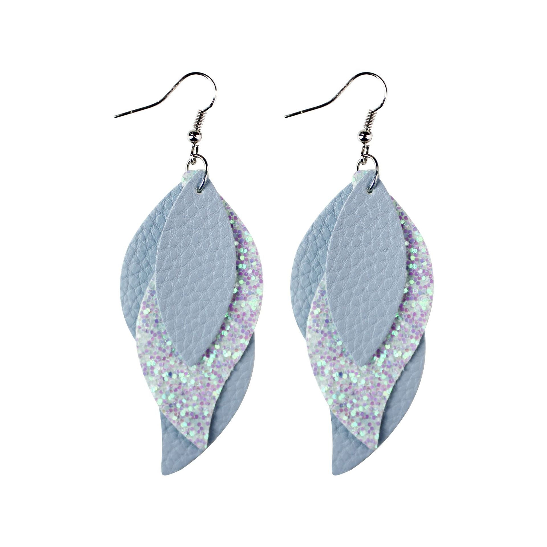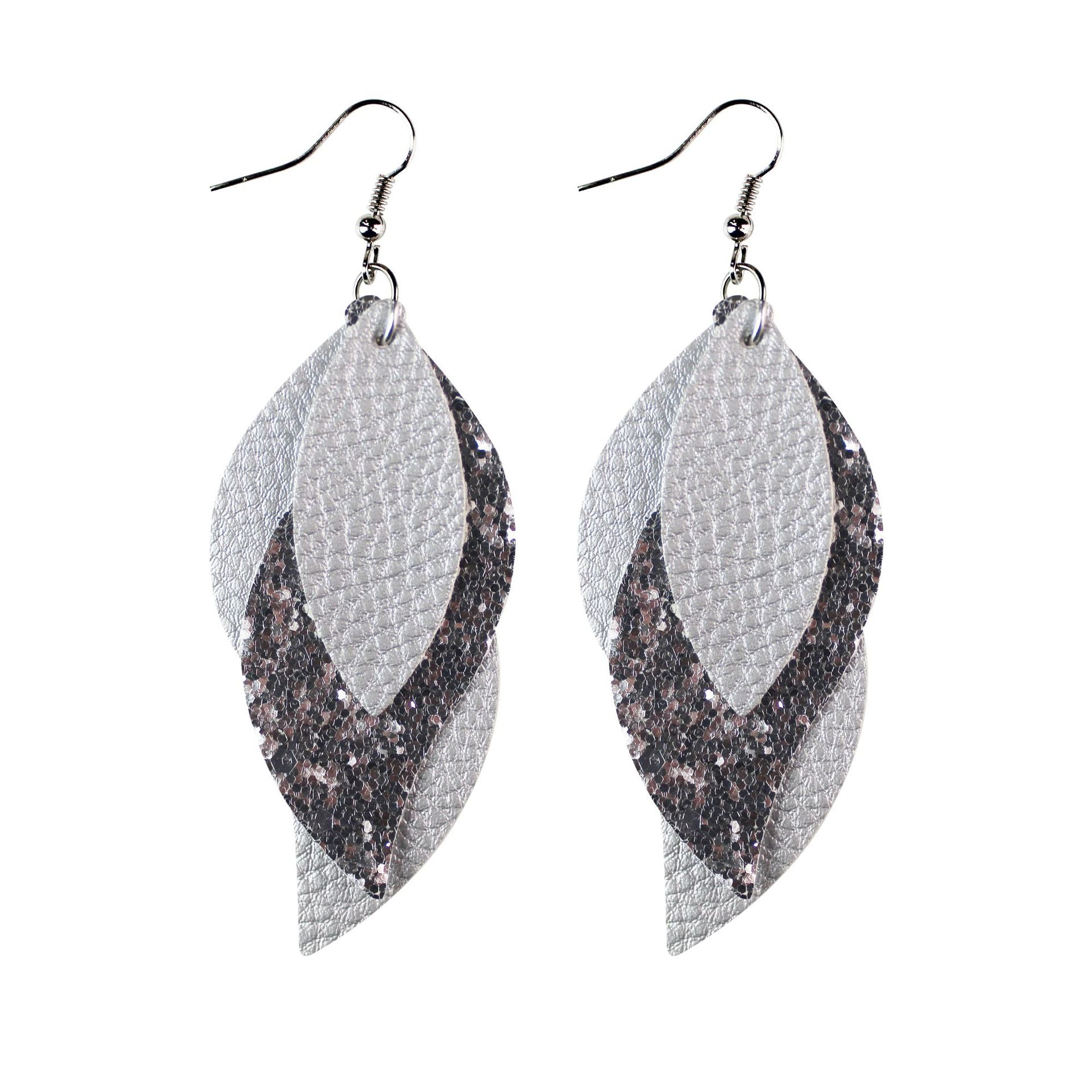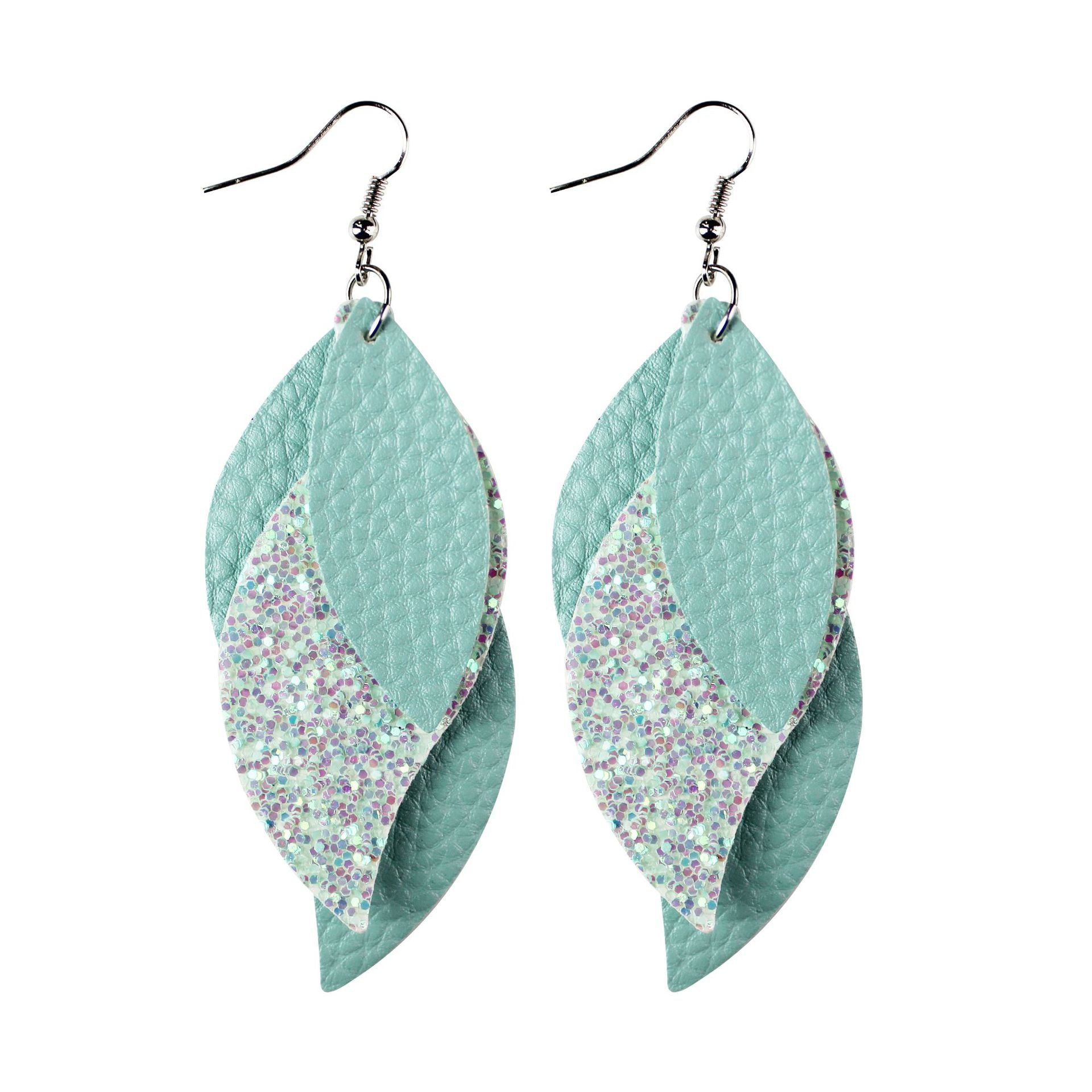 Wholesale Lychee Patterned Sequin Leaf Wave Shaped Three-layer Leather Earrings