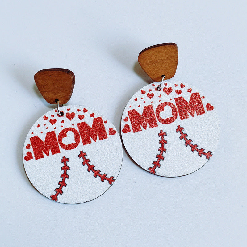 Wholesale Mother's Day MOM Wooden Printed Earrings