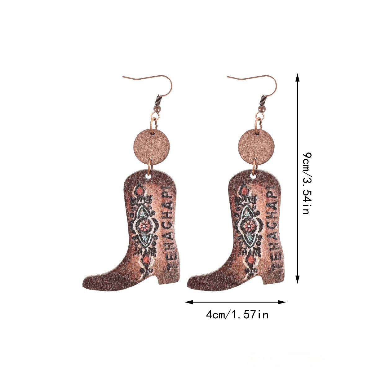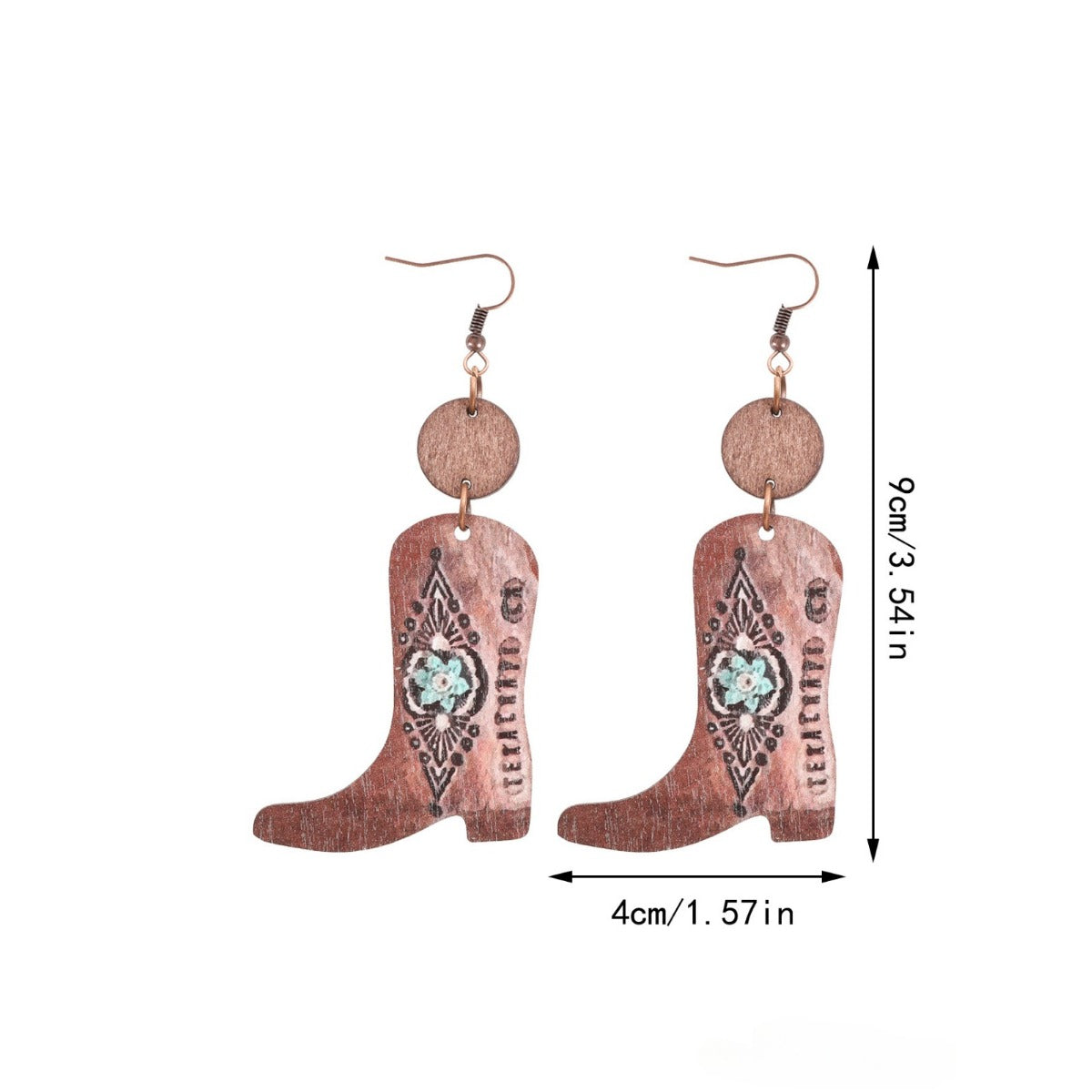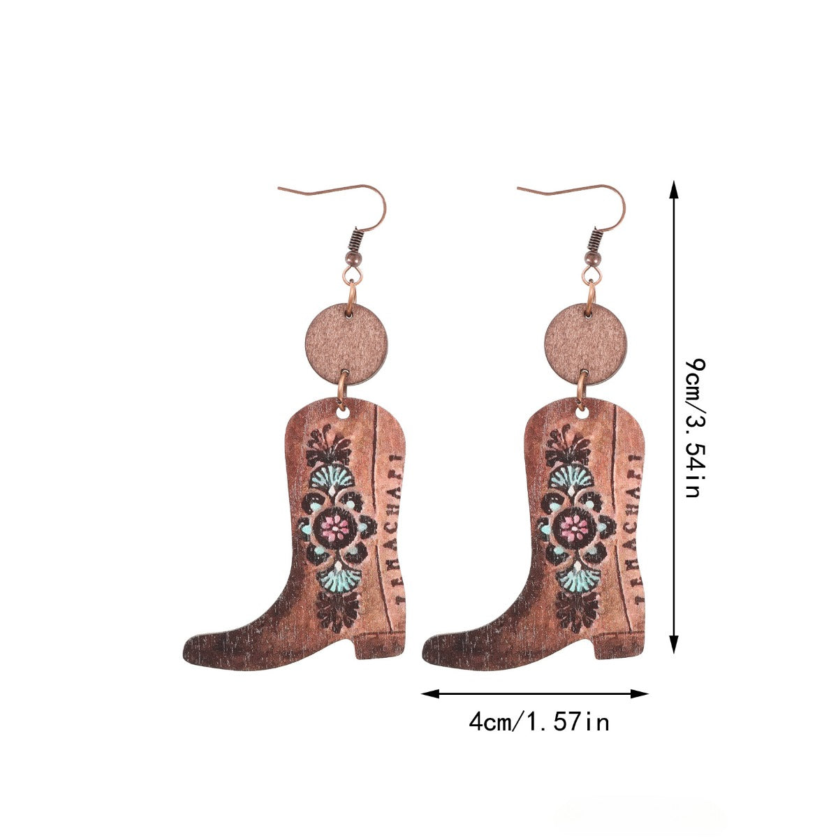 Wholesale of Western Style Plants, Flowers, Retro Ethnic Style Long Boots, Wooden Earrings