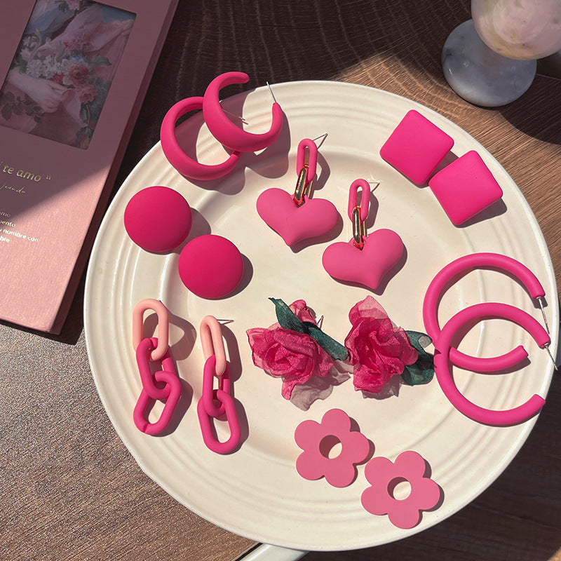 Wholesale Rose Red Flower Love Summer Geometry Sweet Alloy Earrings