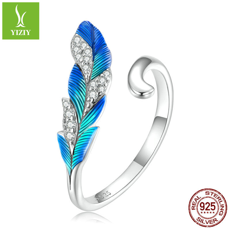 Wholesale S925 Sterling Silver Dazzling Blue Feather Earrings Ring
