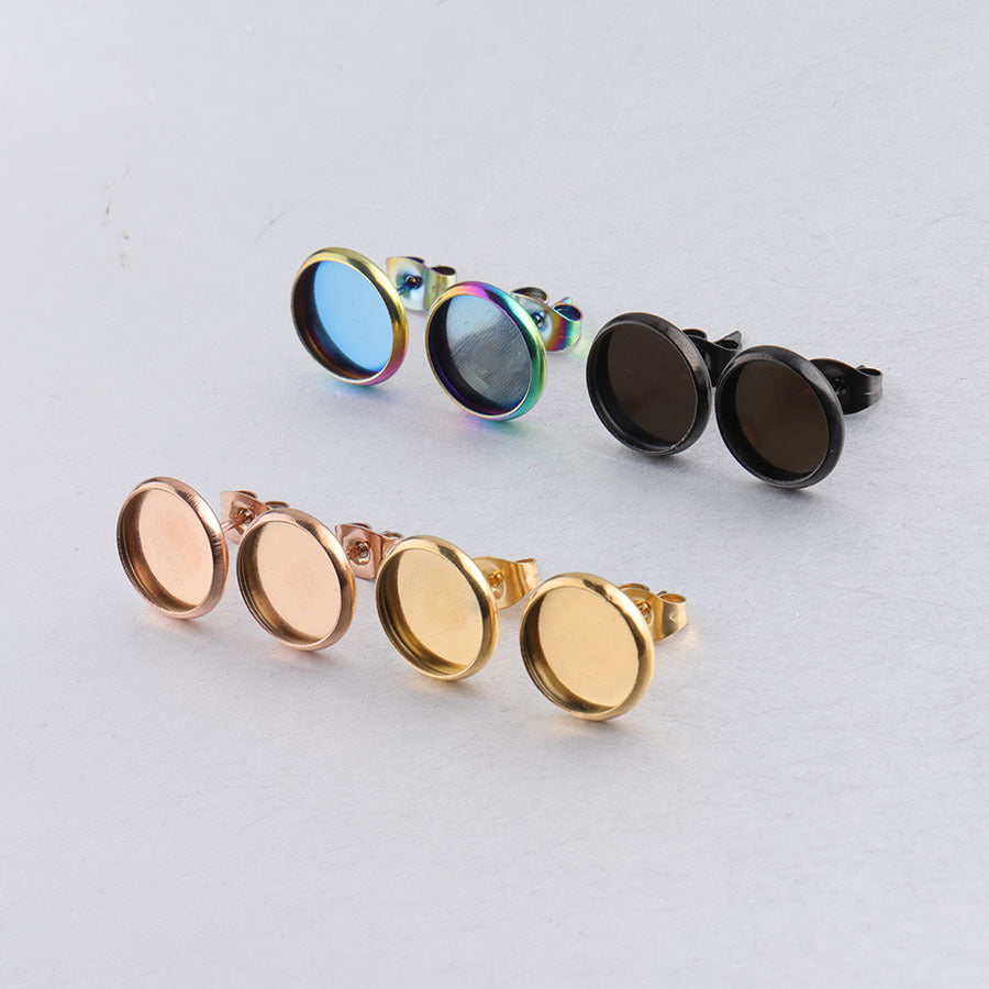 Wholesale Stainless Steel Gold Plated Rose Gold Color Black Simple Earrings