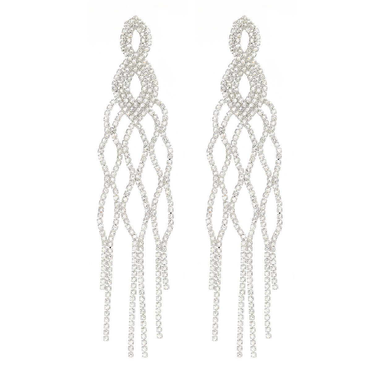 Wholesale Tassel Full Diamond Mesh Exaggerated Claw Chain Long Zircon Earrings