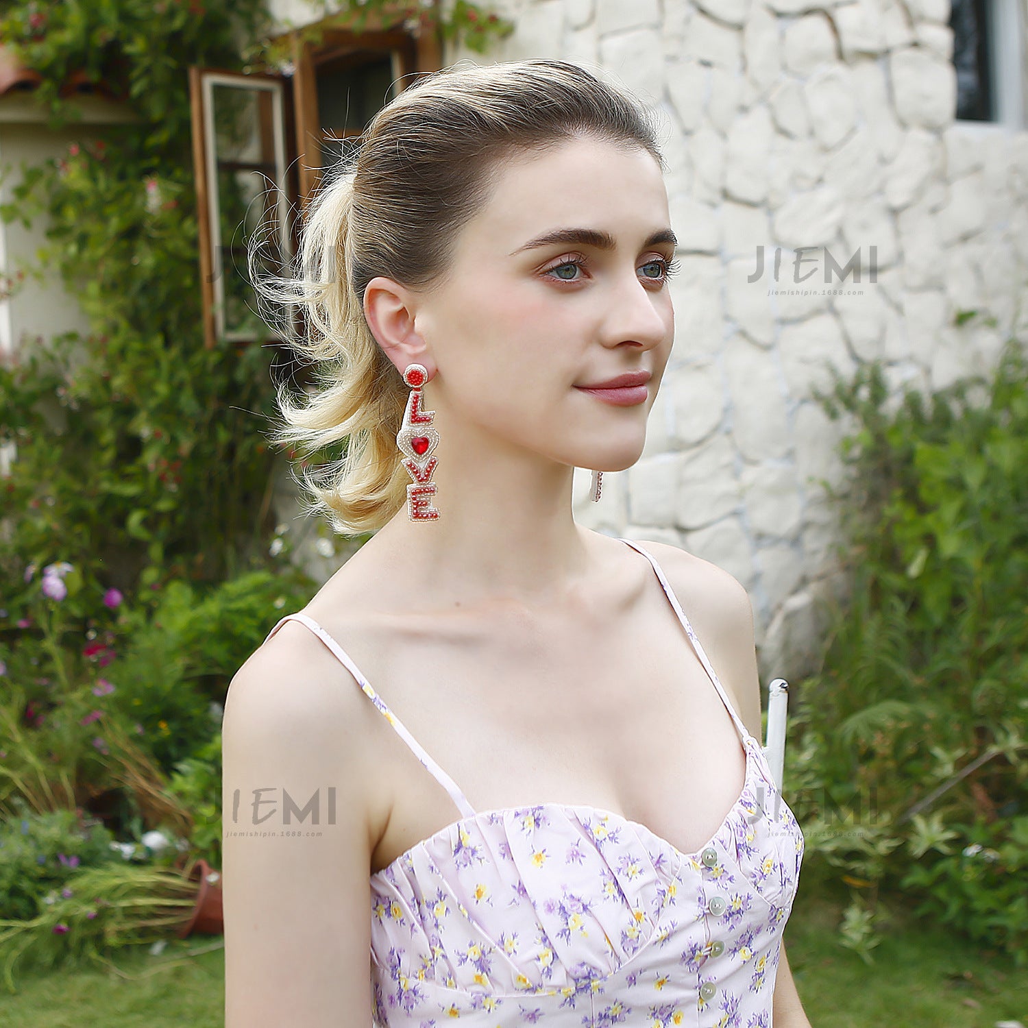 Wholesale Valentine's Day Handwoven Bohemian LOVE Rice Bead Earrings