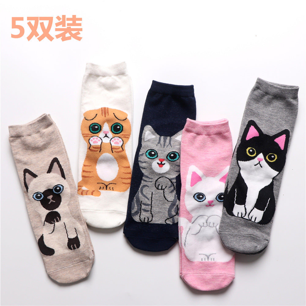 Wholesale 5 pairs of spring and autumn women's cartoon butt cat cute love cotton socks