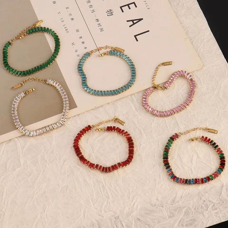 Wholesale Square Zircon Stainless Steel Single Row Tennis Gold Plated Bracelet