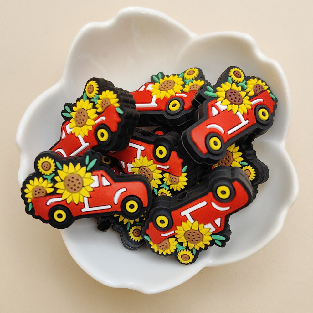 Wholesale 10pcs Cartoon Car Sunflower Western Style Print Focal Beads