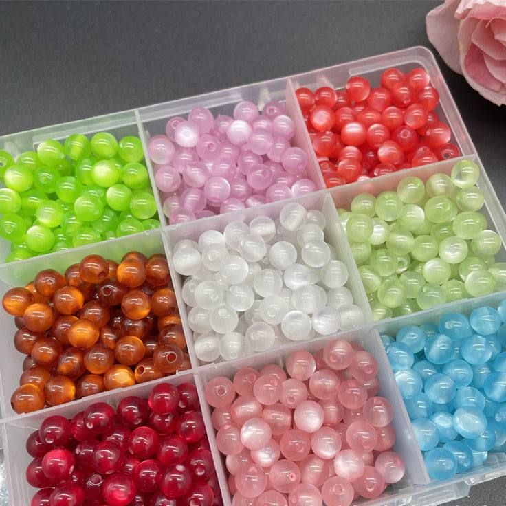 Cuentas al por mayor de plástico de 8mm de resina de ojo de gato de imitación cuentas redondas cuentas sueltas OLY-BDS-XH002