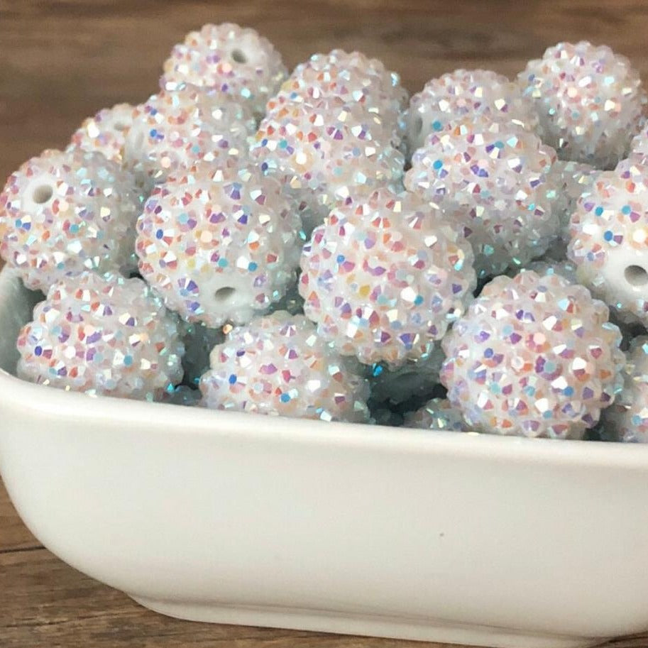 Wholesale 5PCS 20MM Resin Diamond Ball Beads Solid White AB Color Inlaid Resin Diamond Acrylic Loose Beads