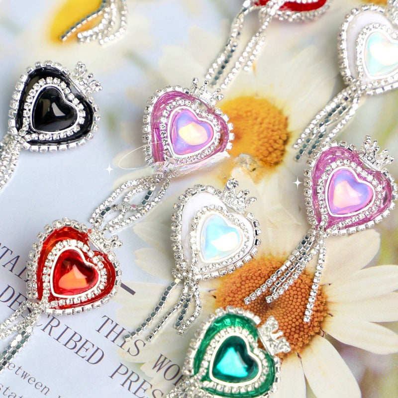 Wholesale 2PCS Soft Clay Love Crown Full of Diamonds and Tassel Beads